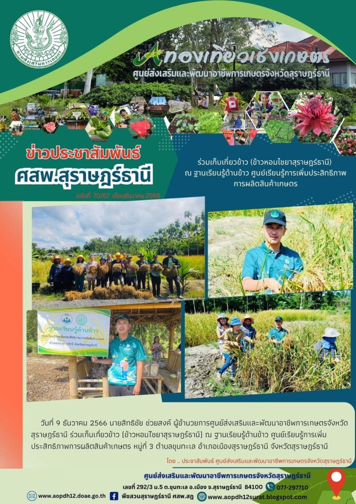 ร่วมเก็บเกี่ยวข้าว (ข้าวหอมไชยาสุราษฎร์ธานี) ณ ฐานเรียนรู้ด้านข้าว ศูนย์เรียนรู้การเพิ่มประสิทธิภาพการผลิตสินค้าเกษตร เขียนบน 12 ธันวาคม 2023 โดย aopdh12surat ตอบกลับ