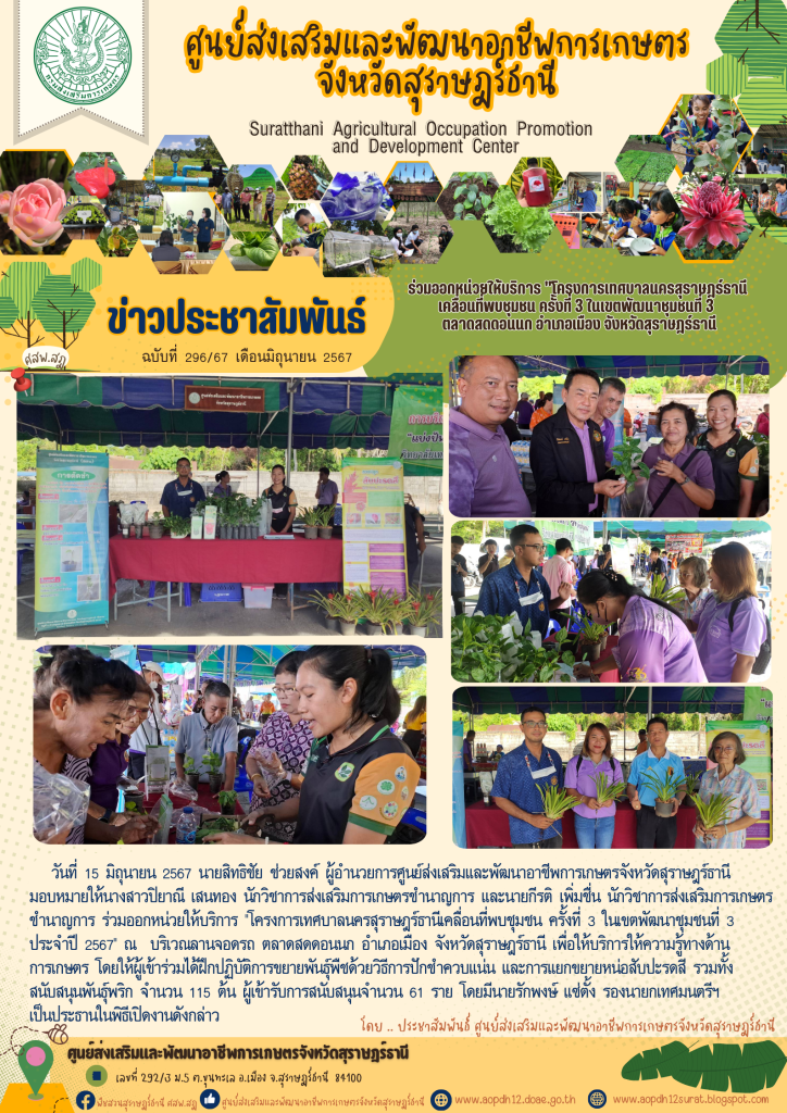 ร่วมออกหน่วยให้บริการ “โครงการเทศบาลนครสุราษฎร์ธานีเคลื่อนที่พบชุมชน ครั้งที่ 3 ในเขตพัฒนาชุมชนที่ 3 ประจำปี 2567 ตลาดสดดอนนก อำเภอเมือง จังหวัดสุราษฎร์ธานี เขียนบน 17 มิถุนายน 2024 โดย aopdh12surat ตอบกลับ