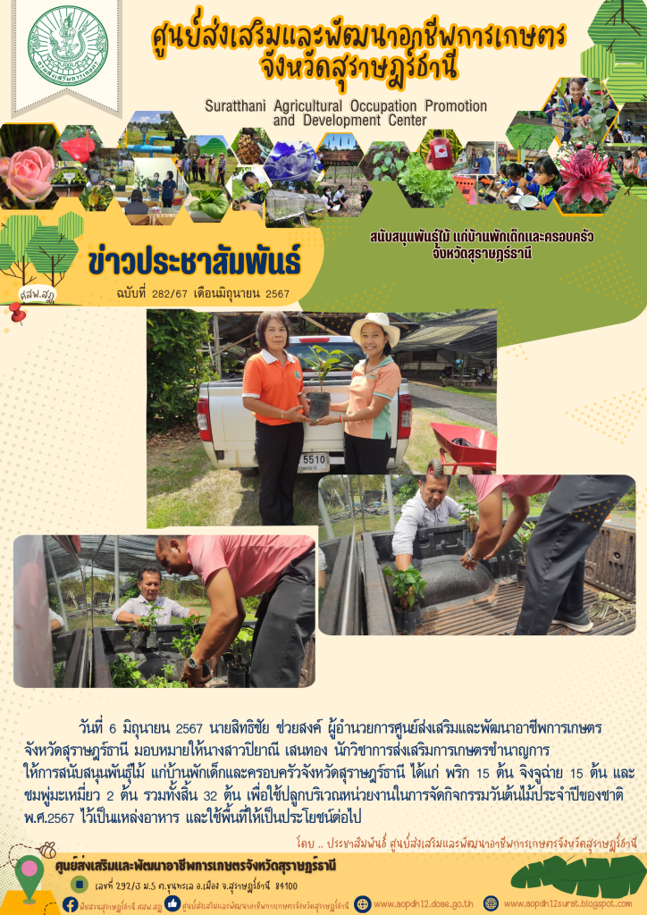 สนับสนุนพันธ์ุไม้ แก่บ้านพักเด็กและครอบครัวจังหวัดสุราษฎร์ธานี เขียนบน 6 มิถุนายน 2024 โดย aopdh12surat ตอบกลับ