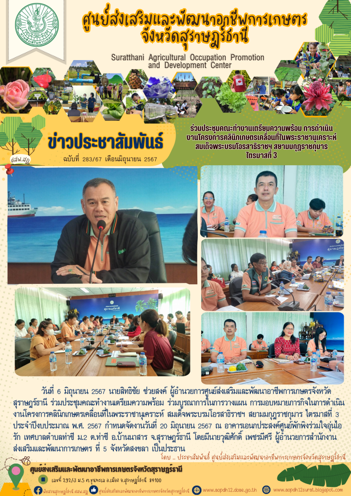 ร่วมประชุมคณะทำงานเตรียมความพร้อม ร่วมบูรณาการในการวางแผน การมอบหมายภารกิจในการดำเนินงานโครงการคลินิกเกษตรเคลื่อนที่ในพระราชานุเคราะห์ สมเด็จพระบรมโอรสาธิราชฯ สยามมกุฎราชกุมาร ไตรมาสที่ 3 เขียนบน 6 มิถุนายน 2024 โดย aopdh12surat ตอบกลับ