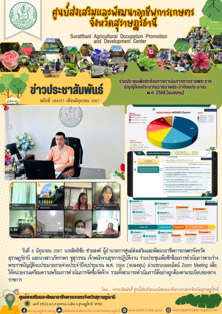 ร่วมประชุมเพื่อซักซ้อมการดำเนินการตามร่างพระราชบัญญัติงบประมาณรายจ่ายประจำปีงบประมาณ พ.ศ. 2568 (งบลงทุน) เขียนบน 6 มิถุนายน 2024 โดย aopdh12surat ตอบกลับ