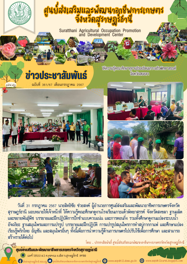 ให้ความรู้คณะศึกษาดูงานโรงเรียนเกาะแต้วพิทยาสรรค์ จังหวัดสงขลา เขียนบน 31 กรกฎาคม 2024 โดย aopdh12surat ตอบกลับ