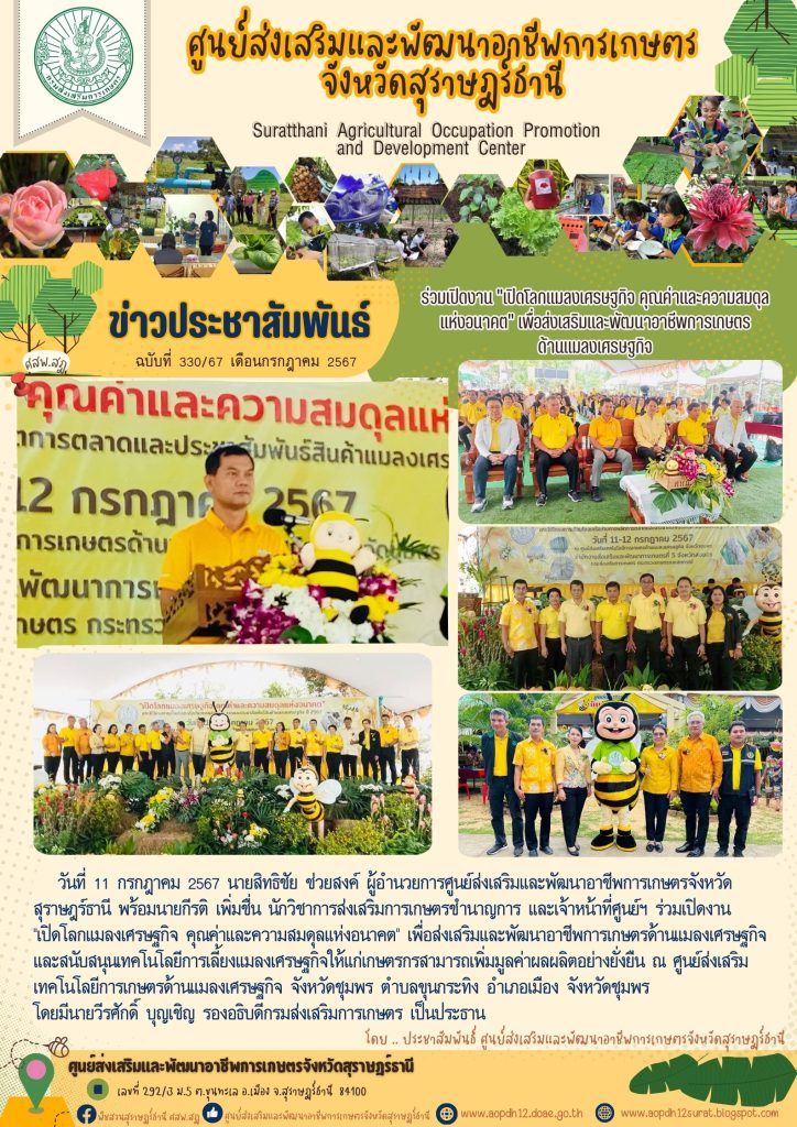 ร่วมเปิดงาน “เปิดโลกแมลงเศรษฐกิจ คุณค่าและความสมดุลแห่งอนาคต” เพื่อส่งเสริมและพัฒนาอาชีพการเกษตรด้านแมลงเศรษฐกิจ เขียนบน 11 กรกฎาคม 2024 โดย aopdh12surat