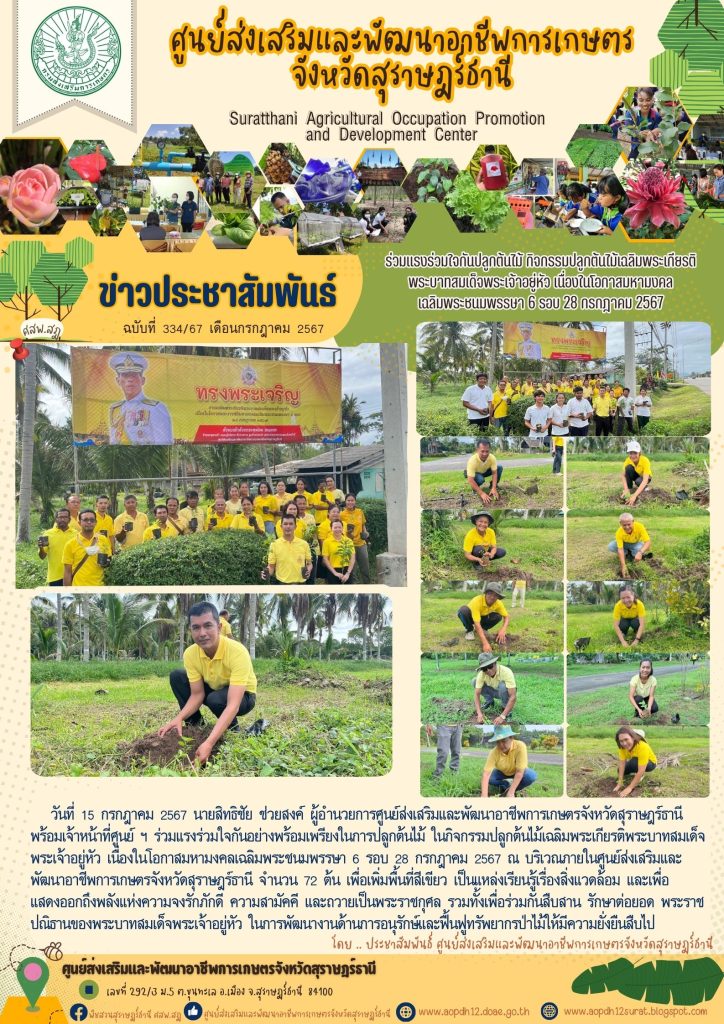 ร่วมแรงร่วมใจกันปลูกต้นไม้ กิจกรรมปลูกต้นไม้เฉลิมพระเกียรติพระบาทสมเด็จพระเจ้าอยู่หัว เนื่องในโอกาสมหามงคลเฉลิมพระชนมพรรษา 6 รอบ 28 กรกฎาคม 2567 เขียนบน 15 กรกฎาคม 2024 โดย aopdh12surat