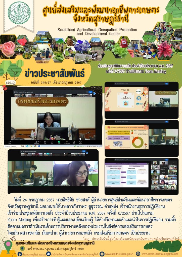 ร่วมประชุมคลินิกงานคลัง ประจำปีงบประมาณ พ.ศ. 2567 ครั้งที่ 6/2567 ผ่านโปรแกรม Zoom Meeting เขียนบน 24 กรกฎาคม 2024 โดย aopdh12surat ตอบกลับ
