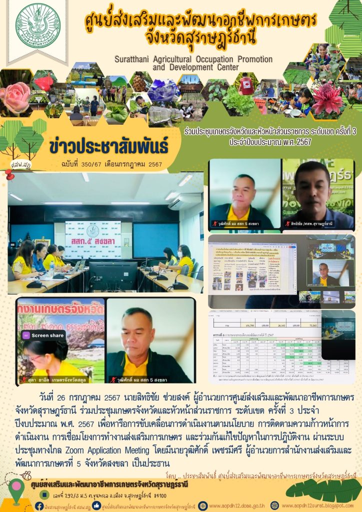ร่วมต้อนรับและเป็นวิทยากรกิจกรรมพัฒนาศักยภาพเกษตรกรต้นแบบ ศพก. จังหวัดสุราษฎร์ธานี เขียนบน 25 กรกฎาคม 2024 โดย aopdh12surat ตอบกลับ