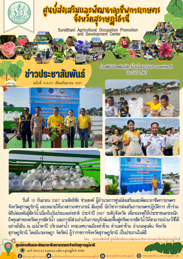 ร่วมพิธีปล่อยพันธุ์สัตว์น้ำเนื่องในวันประมงแห่งชาติ ประจำปี 2567 เขียนบน 10 กันยายน 2024 โดย aopdh12surat ตอบกลับ