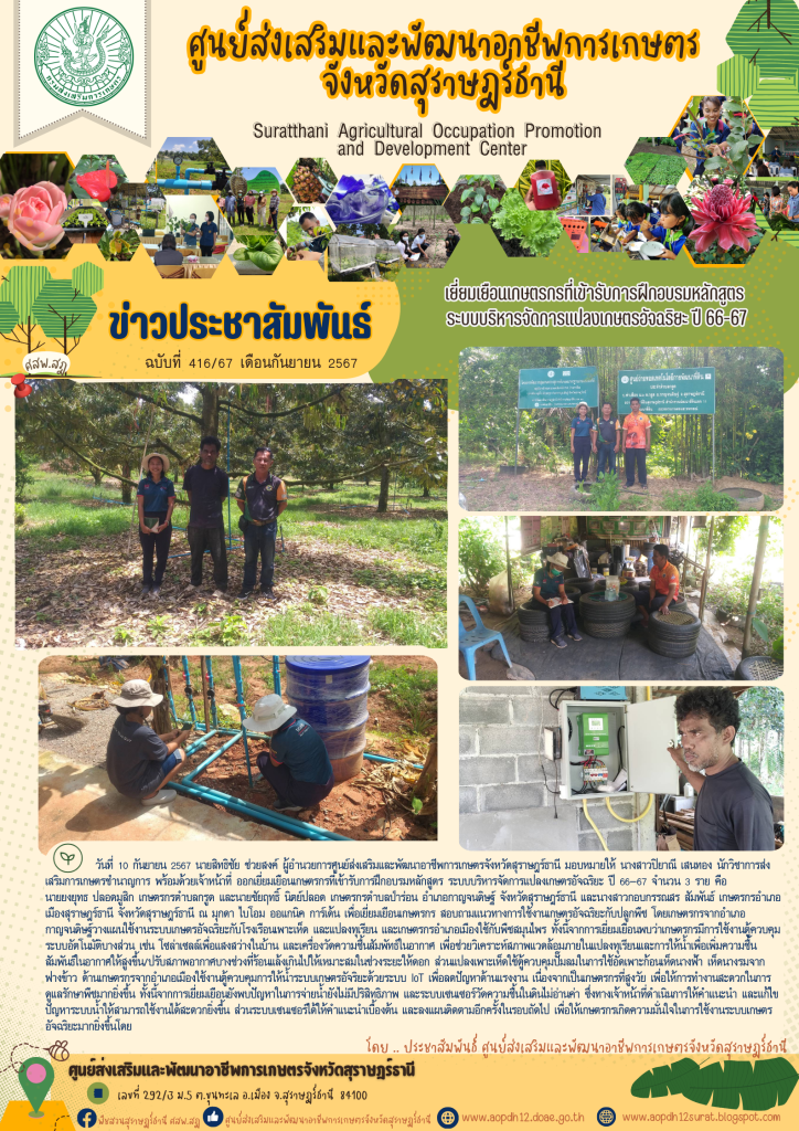 เยี่ยมเยือนเกษตรกรที่เข้ารับการฝึกอบรมหลักสูตร ระบบบริหารจัดการแปลงเกษตรอัจฉริยะ ปี 66-67 เขียนบน 11 กันยายน 2024 โดย aopdh12surat ตอบกลับ