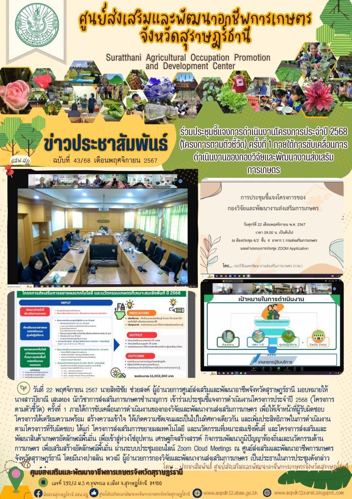 ร่วมประชุมชี้แจงการดำเนินงานโครงการประจำปี 2568 (โครงการตามตัวชี้วัด) ครั้งที่ 1 ภายใต้การขับเคลื่อนการดำเนินงานของกองวิจัยและพัฒนางานส่งเสริมการเกษตร เขียนบน 22 พฤศจิกายน 2024 โดย aopdh12surat ตอบกลับ