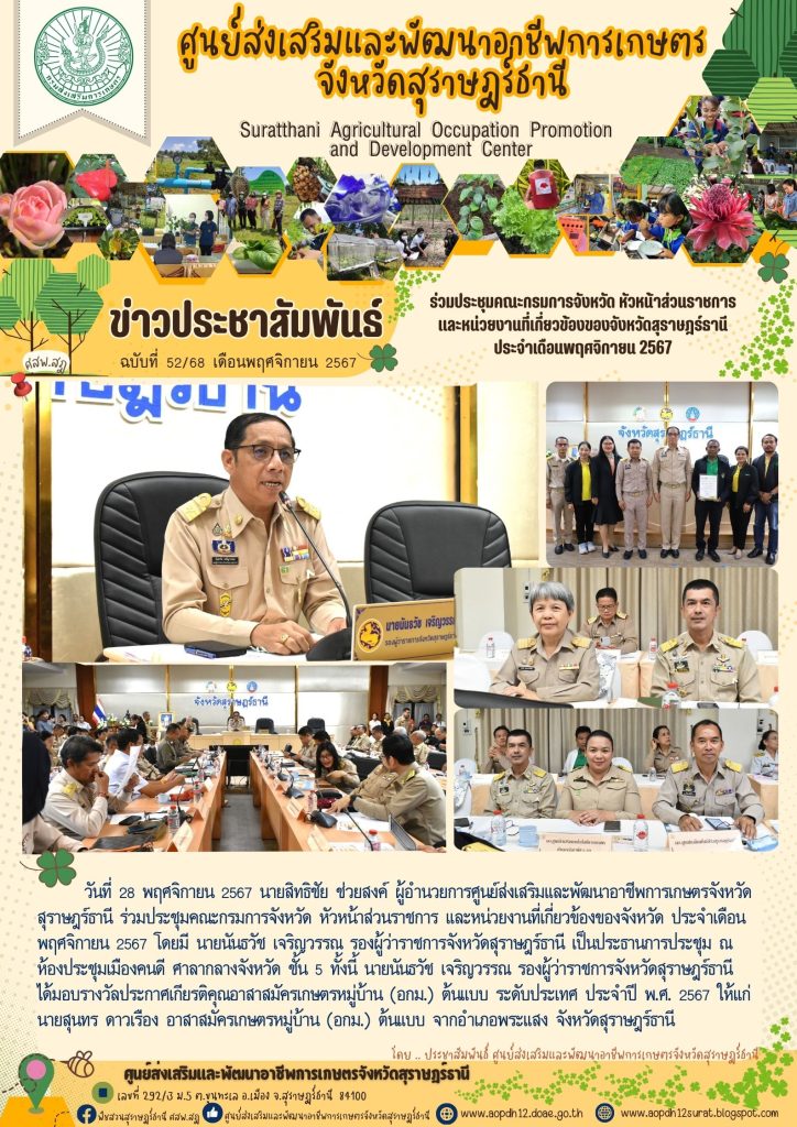 ร่วมประชุมคณะกรมการจังหวัด หัวหน้าส่วนราชการ และหน่วยงานที่เกี่ยวข้องของจังหวัดสุราษฎร์ธานี ประจำเดือนพฤศจิกายน 2567 เขียนบน 28 พฤศจิกายน 2024 โดย aopdh12surat ตอบกลับ