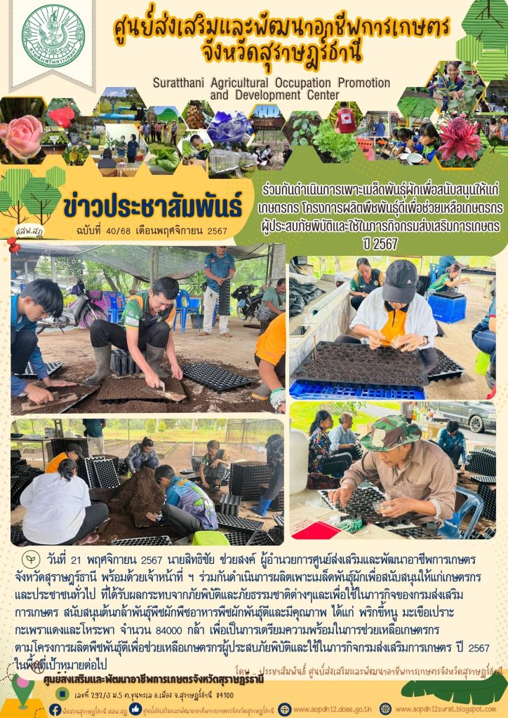 ร่วมกันดำเนินการเพาะเมล็ดพันธุ์ผักเพื่อสนับสนุนให้แก่เกษตรกร โครงการผลิตพืชพันธุ์ดีเพื่อช่วยเหลือเกษตรกรผู้ประสบภัยพิบัติและใช้ในภารกิจกรมส่งเสริมการเกษตร ปี 2567 เขียนบน 21 พฤศจิกายน 2024 โดย aopdh12surat ตอบกลับ