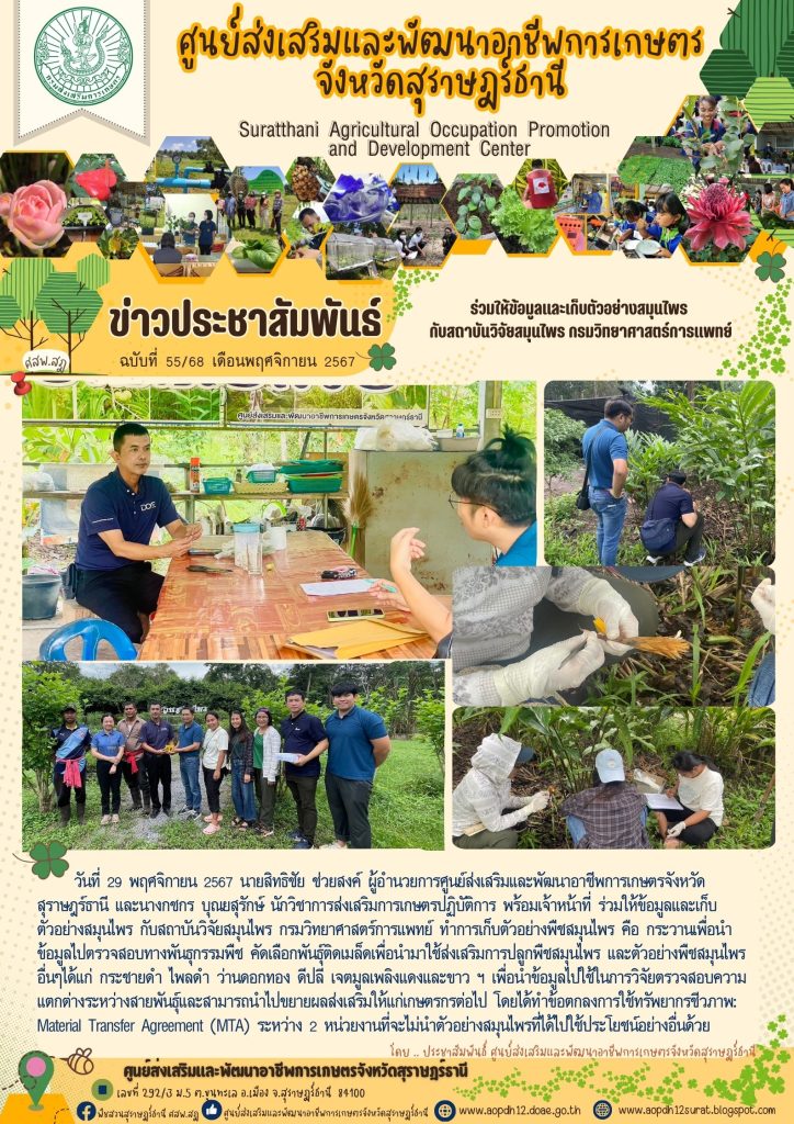 ร่วมให้ข้อมูลและเก็บตัวอย่างสมุนไพร กับสถาบันวิจัยสมุนไพร กรมวิทยาศาสตร์การแพทย์ เขียนบน 29 พฤศจิกายน 2024 โดย aopdh12surat ตอบกลับ