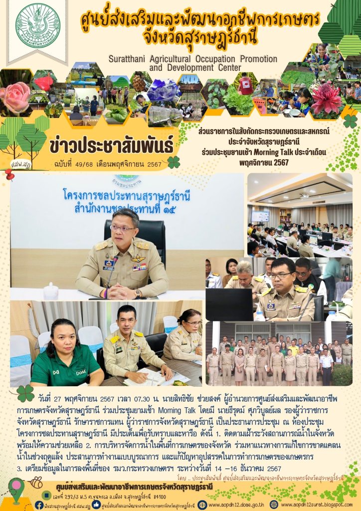 ร่วมประชุมยามเช้า Morning Talk ณ ห้องประชุมโครงการชลประทานสุราษฎร์ธานี เขียนบน 27 พฤศจิกายน 2024 โดย aopdh12surat ตอบกลับ
