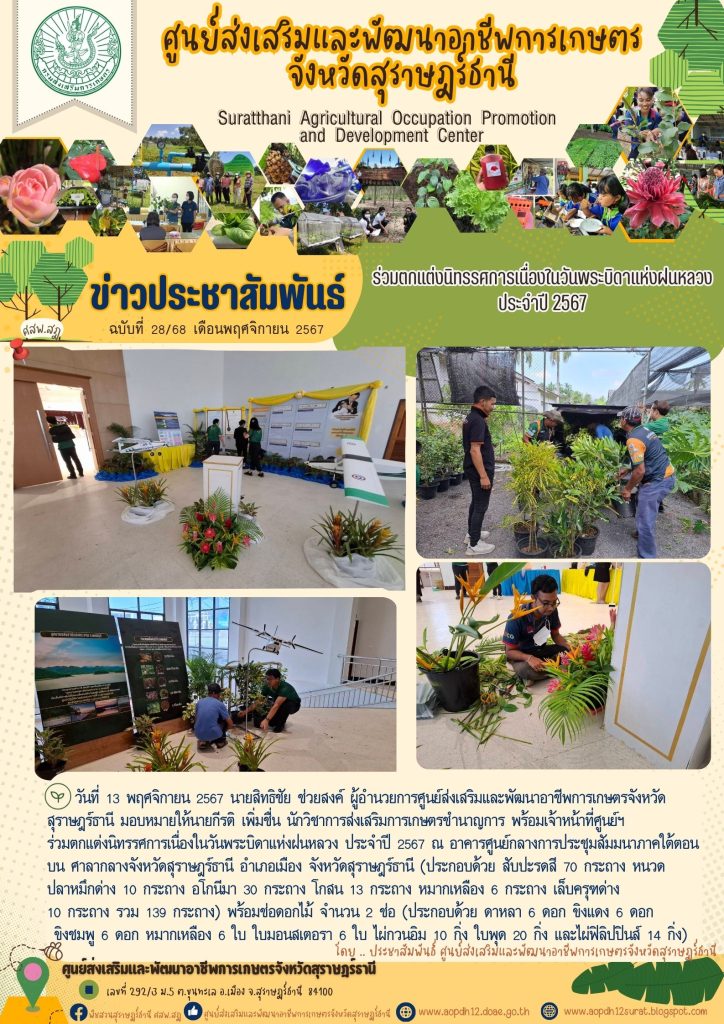 ร่วมตกแต่งนิทรรศการเนื่องในวันพระบิดาแห่งฝนหลวง ประจำปี 2567 เขียนบน 13 พฤศจิกายน 2024 โดย aopdh12surat ตอบกลับ
