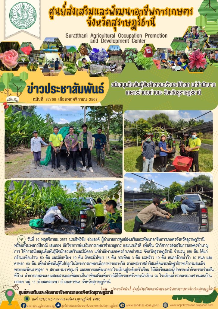 สนับสนุนต้นพันธุ์พืชผักสวนครัวและไม้ดอก แก่สำนักงานเกษตรอำเภอท่าชนะ จังหวัดสุราษฎร์ธานี เขียนบน 19 พฤศจิกายน 2024 โดย aopdh12surat ตอบกลับ