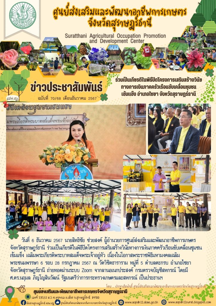 ร่วมเป็นเกียรติในพิธีปิดโครงการเสริมสร้างวินัยทางการเงินภาคครัวเรือนขับเคลื่อนชุมชนเข้มแข็ง อำเภอไชยา จังหวัดสุราษฎร์ธานี เขียนบน 6 ธันวาคม 2024 โดย aopdh12surat ตอบกลับ
