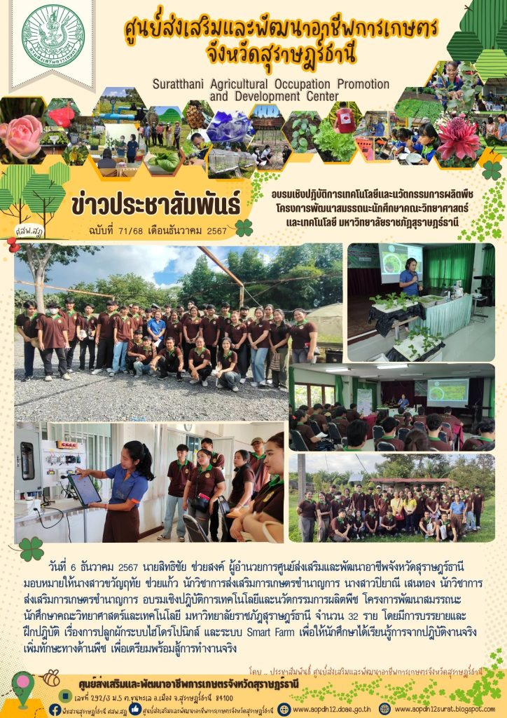 อบรมเชิงปฎิบัติการเทคโนโลยีและนวัตกรรมการผลิตพืช โครงการพัฒนาสมรรถนะนักศึกษาคณะวิทยาศาสตร์และเทคโนโลยี มหาวิทยาลัยราชภัฎสุราษฎร์ธานี เขียนบน 6 ธันวาคม 2024 โดย aopdh12surat ตอบกลับ