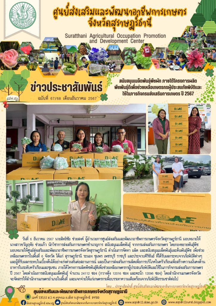 สนับสนุนเมล็ดพันธุ์พืชผัก ภายใต้โครงการผลิตพืชพันธุ์ดีเพื่อช่วยเหลือเกษตรกรผู้ประสบภัยพิบัติและใช้ในภารกิจกรมส่งเสริมการเกษตร ปี 2567 เขียนบน 6 ธันวาคม 2024 โดย aopdh12surat ตอบกลับ