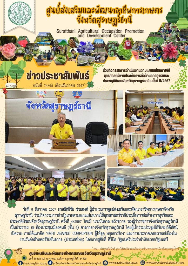 ร่วมกิจกรรมการดำเนินงานตามแผนแม่บทภายใต้ยุทธศาสตร์ชาติประเด็นการต่อต้านการทุจริตและประพฤติมิชอบจังหวัดสุราษฎร์ธานี ครั้งที่ 4/2567 เขียนบน 9 ธันวาคม 2024 โดย aopdh12surat ตอบกลับ