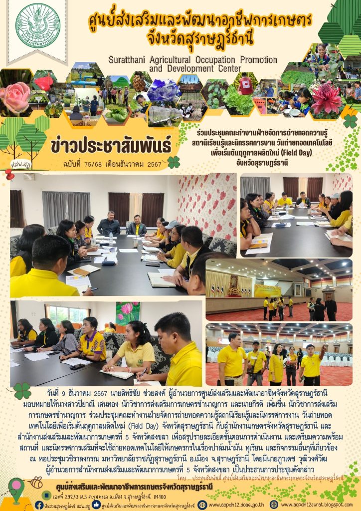 ร่วมประชุมคณะทำงานฝ่ายจัดการถ่ายทอดความรู้สถานีเรียนรู้และนิทรรศการงาน วันถ่ายทอดเทคโนโลยีเพื่อเริ่มต้นฤดูกาลผลิตใหม่ (Field Day) จังหวัดสุราษฎร์ธานี เขียนบน 9 ธันวาคม 2024 โดย aopdh12surat ตอบกลับ